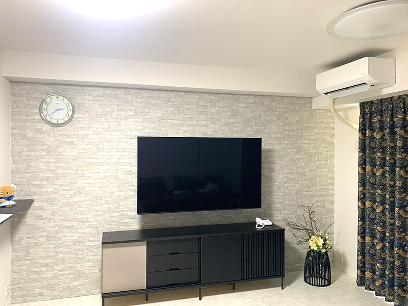 テレビを固定する位置を打ち合わせたり、金具の取り寄せなど、お客様にもたくさんのご協力をいただきました。